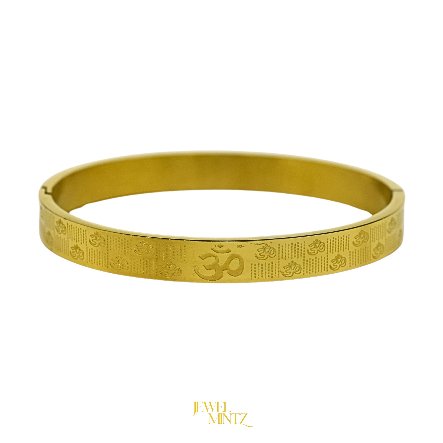 Om Carving Premium Gold Bracelet Men’s Gold Plated Om Kada Bracelet – Anti-Tarnish Spiritual Kada | Jewel Mintz